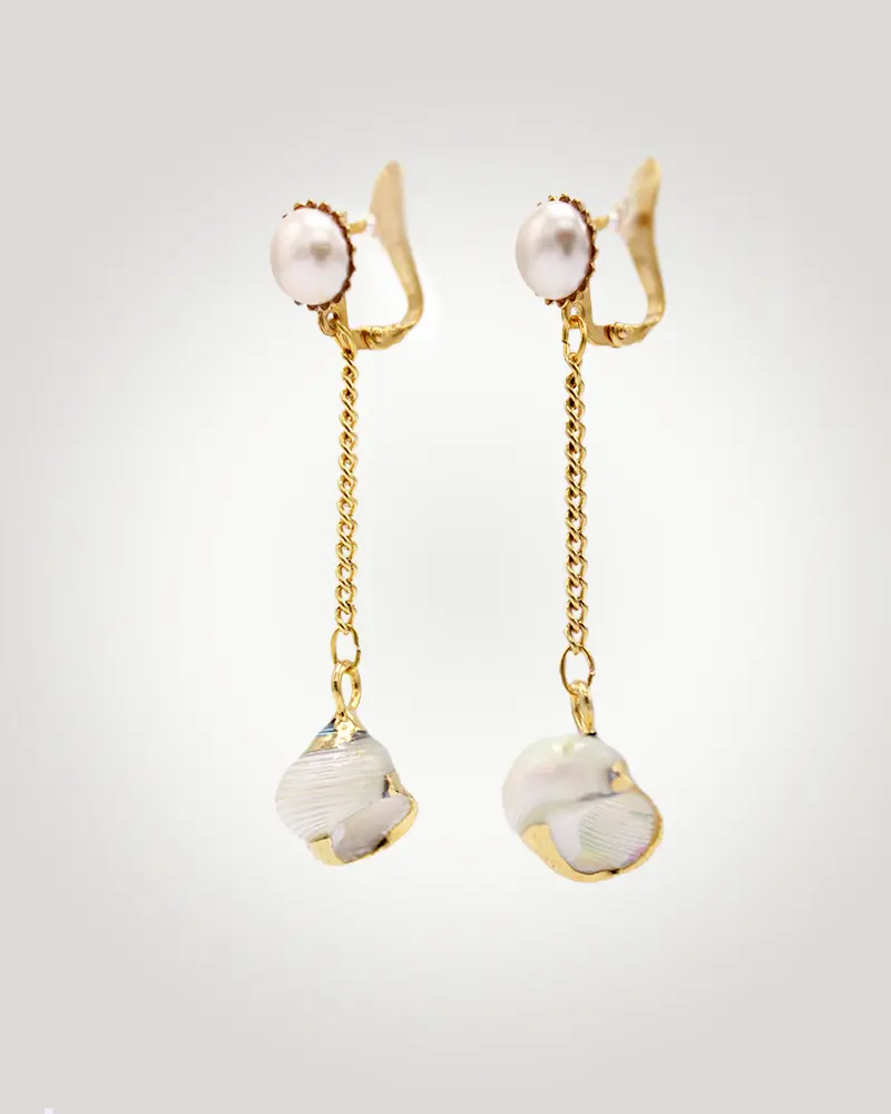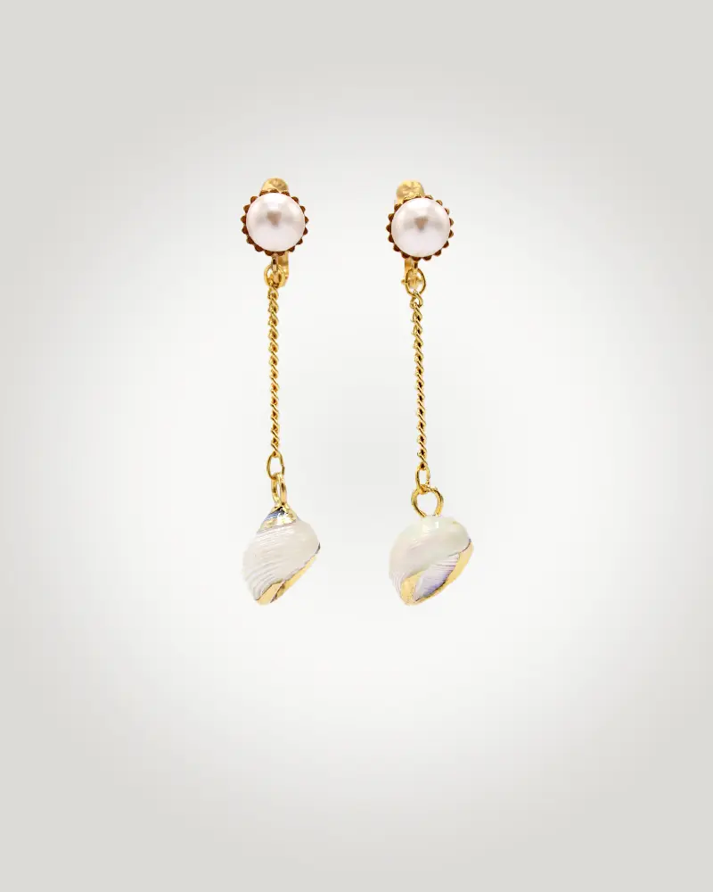 - Material: Latón baño oro 18K, Concha marina