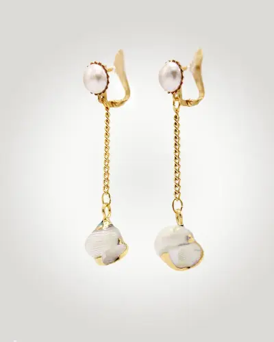 Estos pendientes largos de novia chapados en oro con conchas marinas, son pura tendencia. Han sido diseñados con fornituras vintage, para la mujer moderna que valora la distinción y la atemporalidad en su look nupcial.