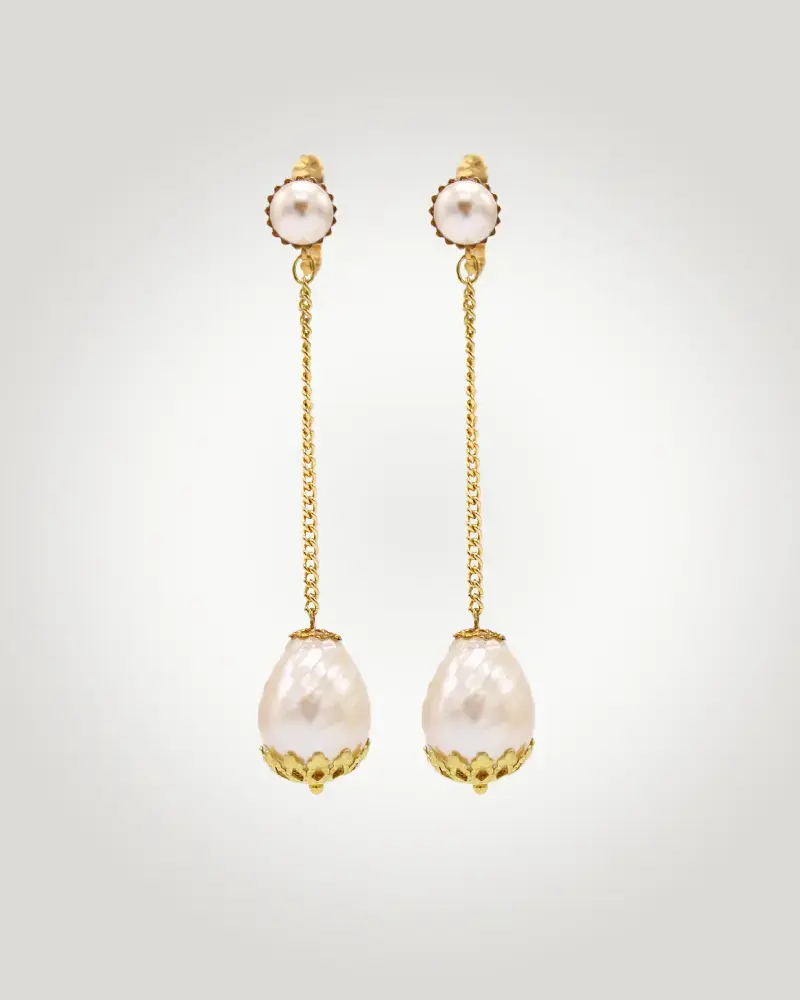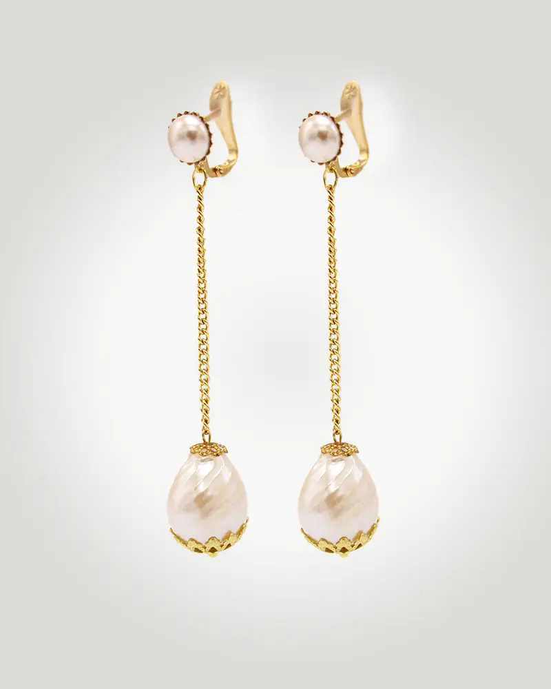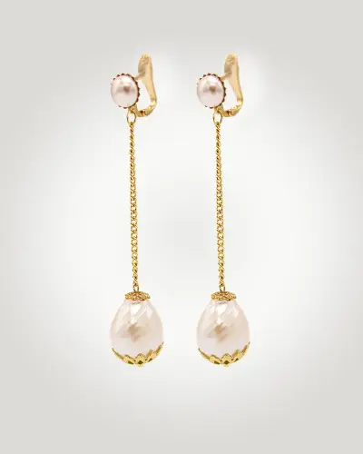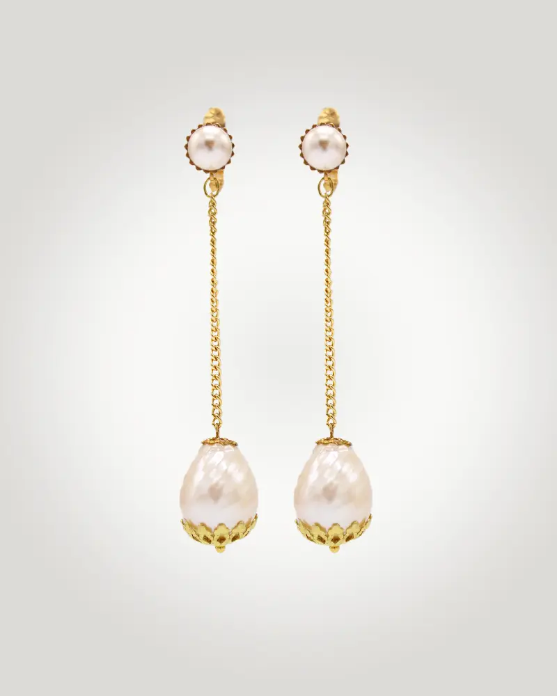 ¡¡¡Pieza única!!! Estos pendientes largos de novia chapados en oro con una gran perla de cristal envuelto en polvo de perla, son pura tendencia. Han sido diseñados con fornituras vintage, para la mujer moderna que valora la distinción y la atemporalidad en su look nupcial.